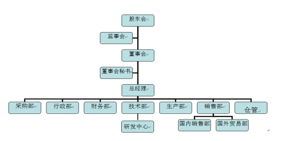公司根據(jù)業(yè)務(wù)流程,設(shè)計和建立了組織架構(gòu),目前設(shè)立了8個職能部門,部門除了各負(fù)其責(zé)外,部門之間還相互協(xié)調(diào)合作,確保管理責(zé)任的落實。
